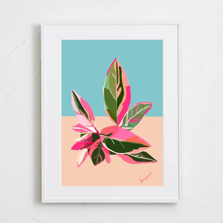 【現代アートポスター】ボタニカル 観葉植物 ナチュラル ポップイラスト A4(S) フレームセット:白 29.4×38.4cm