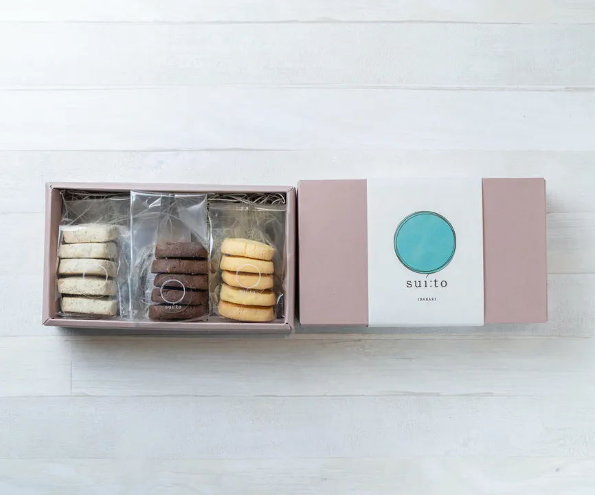 sui:toの焼き菓子は素材本来の風味を大切に、保存料や着色料などを使用しておりません。出来るだけ自然な素材を厳選し、自社工房で一つ一つ丁寧にお作りしています。
