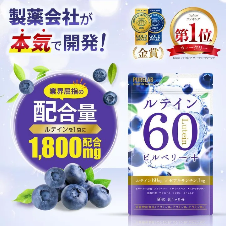 ルテイン60㎎ ブルーベリー・ビルベリー アサイー サプリメント|PURELAB