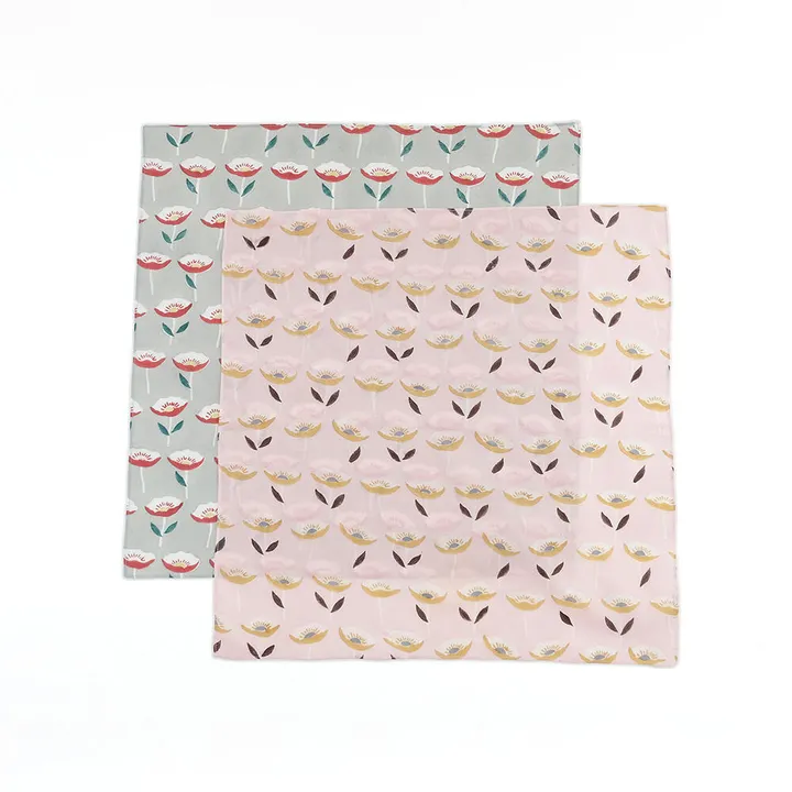 冬に色鮮やかに花開くアネモネをモチーフにしたブロックプリントハンカチ。ギリシャ語で「風」を意味するアネモスを由来に持ち、イギリスでは「wind flower」と呼ばれるこの花が、風に揺れながら咲く美しい姿をデザインに落とし込みました。「希望」や「期待」といった花言葉を持つアネモネは、贈り物としても最適。ハンカチとしてはもちろん、ラッピングやインテリアとしてもお楽しみいただけます。 ブロックプリントとは、木彫り版でハンコを押すように1柄ずつ1色ずつプリントされたものです。まず、アウトラインとなる柄のスタンプを押していき、その後色を乗せていきます。使われている色の数だけ作業は複雑になっていきます。全て手作業の為、染ムラやスタンプの境目などが少し出ていますが、それがブロックプリントの良さでもあり、風合いとなっております。