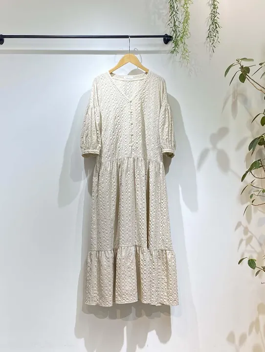 ドビーサッカーティアードワンピース ベージュ
