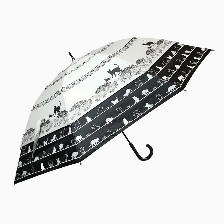 日本政府推奨商品 親骨45→60cm 裾が広がる トランスフォーム傘 レース&猫柄 UVカット&完全遮光 遮熱 27019 オフホワイト×ブラック