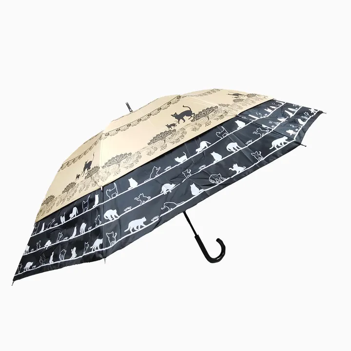 日本政府推奨商品 親骨45→60cm 裾が広がる トランスフォーム傘 レース&猫柄 UVカット&完全遮光 遮熱 27019 ベージュ×ブラック
