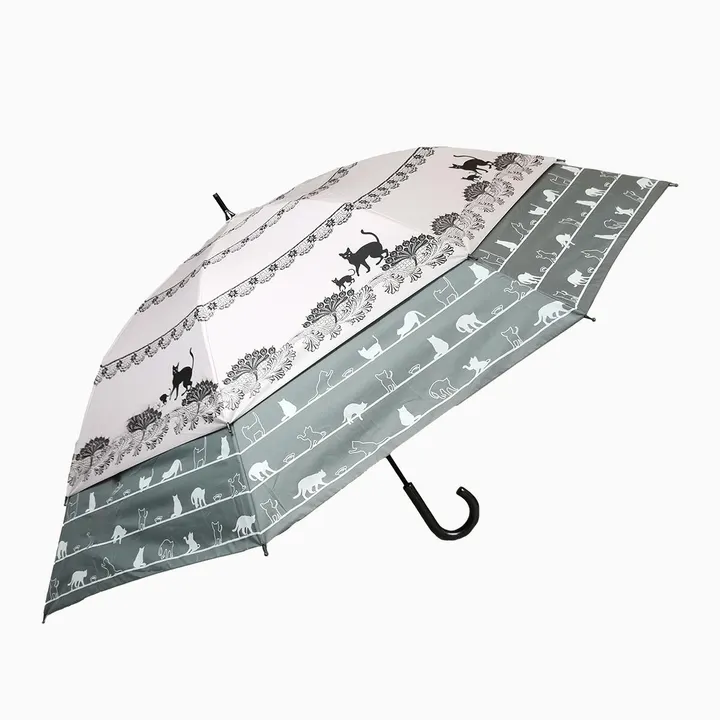 日本政府推奨商品 親骨45→60cm 裾が広がる トランスフォーム傘 レース&猫柄 UVカット&完全遮光 遮熱 27019 ピンク×ブルー