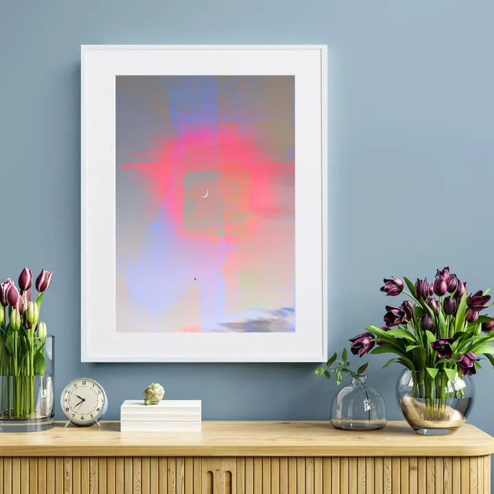 【現代アートポスター】ピンクの月 夜空 風景景色 おしゃれ 神秘的な写真 PHOTO A3(M) フレームセット:白 40.0×51.5cm