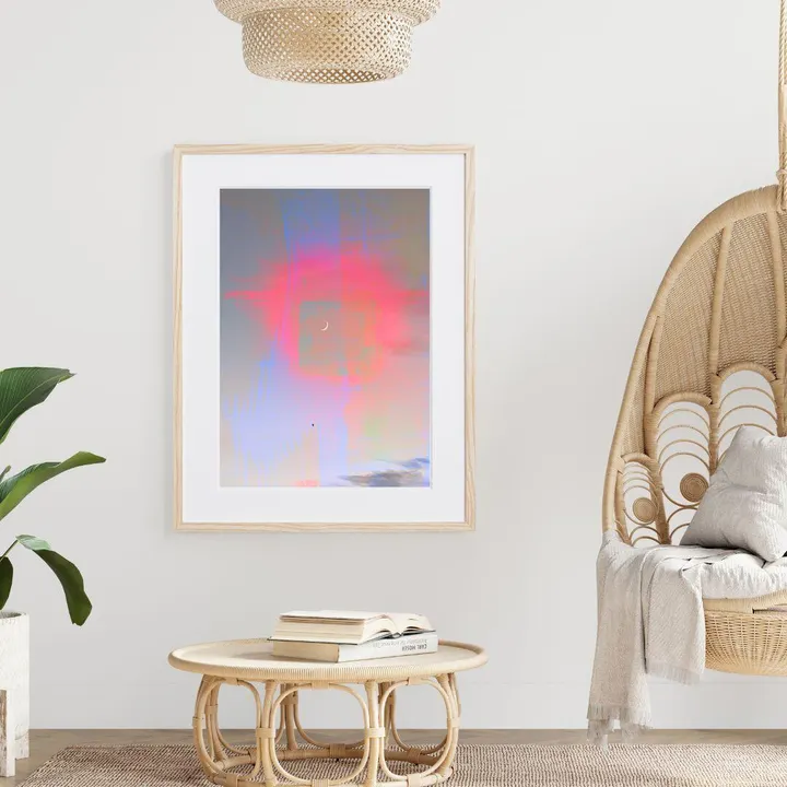 【現代アートポスター】ピンクの月 夜空 風景景色 おしゃれ 神秘的な写真 PHOTO A2(L) フレームセット:無垢 56.1×74.3cm