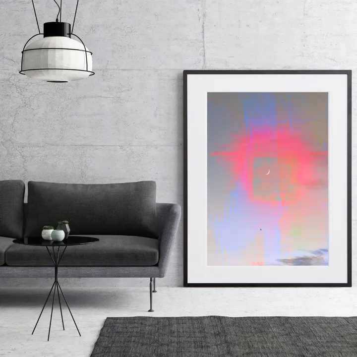 【現代アートポスター】ピンクの月 夜空 風景景色 おしゃれ 神秘的な写真 PHOTO A2(L) フレームセット:黒 55.1×73.3cm