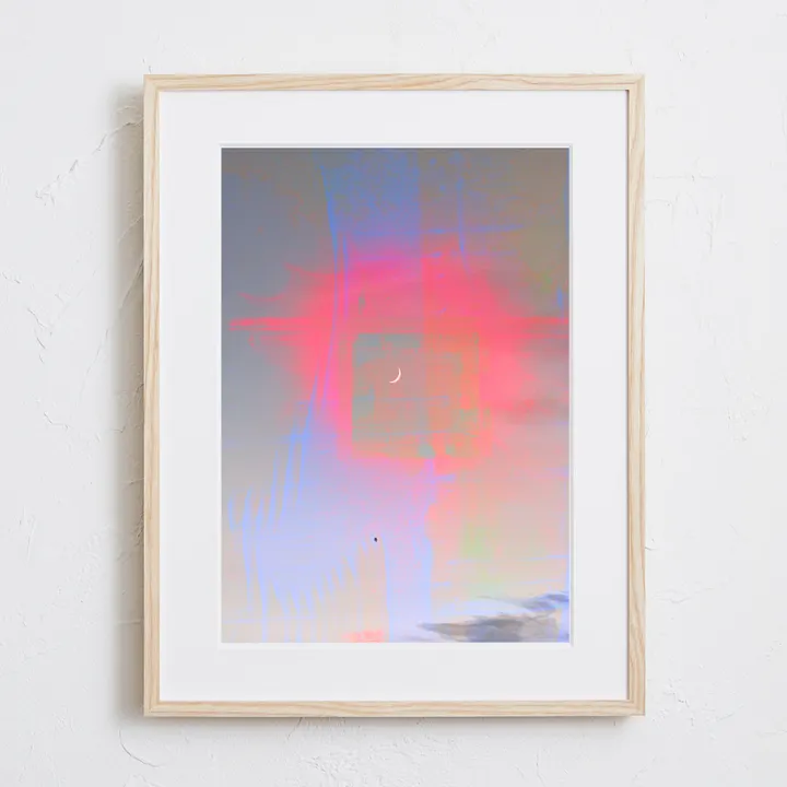 【現代アートポスター】ピンクの月 夜空 風景景色 おしゃれ 神秘的な写真 PHOTO A4(S) フレームセット:無垢 30.4×39.4cm