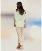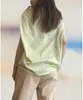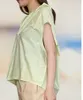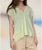 シンプルで着心地の良いミントグリーンのトップス。カジュアルにもフォーマルにも合わせやすい万能アイテムです。 夏にこの一枚。 インナーの上に一枚で着ても、シャツやワンピースと重ねて着ても涼し気。  さらりとした生地感が心地よく、ゆるいデザインのトップスはあるがままの動きが魅力です。 シルケット加工 UV加工 一枚仕立て 前中心はV字に深く空いています お肌に優しい天竺カットソー