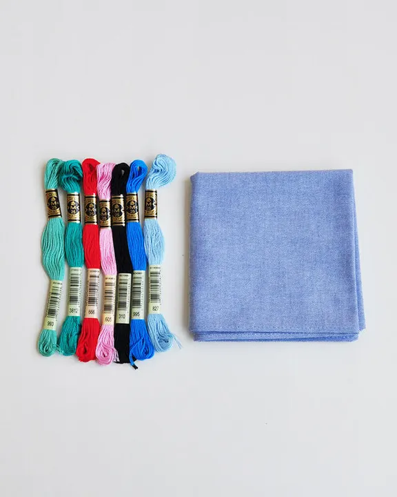 EMBROIDERY KIT 002.initial handkerchief / Blue