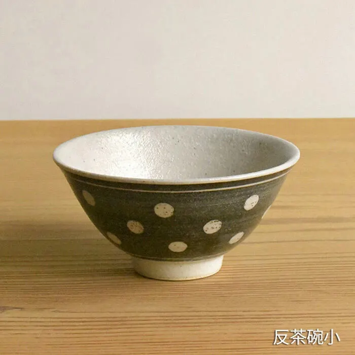 土物ならではのあたたかみが手になじむ器 《みずたまシリーズ》 和食器らしい落ち着いた色味を背景に不規則にならぶポップな水玉模様がかわいらしさを表現しています。 落ち着きと可愛さのバランスが絶妙で幅広い年代の方に末永くご愛用いただけるデザインです。 みずたまシリーズは、多用椀、茶碗2種、5寸丼、プレート2種、湯呑がございます。 シリーズでも単品でもお楽しみいただけます。 みずたまシリーズは岐阜県美濃地方駄知の窯元で一つ一つ丁寧に作られています。