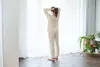 先行して展開していたルームパンツをご愛用の方々をはじめ、たくさんのご要望をいただいておりましたトップスが、ようやく発売となりました。 ふわふわの肌触りが地肌に気持ちよく、サラッとした着心地でありながら、3重織りのガーゼがしっかり保温してくれるので、その軽さ、薄さからすると意外なほどあたたかさがあります。春、秋冬と幅広いシーズンに活躍してくれます。 身幅と、袖丈、アームホールがやや大きめのつくりで、ざっくりとしたシルエットのデザインなので、体のラインを拾いません。 また、ネックホールは着脱時のストレスがない、ややゆったりめの仕様ですが、かがんだ姿勢でも開きすぎないつくりです。 全工程日本製、ホルマリン検査済みで、敏感肌の方でも安心してお使いいただけます。 パジャマ、部屋着などルームウェアとして、そして、ちょっとそこまでお出かけするワンマイルウェアとして、くらしの中のいろんな場面で活躍してくれます。 部屋干しでも乾きやすいので、それほどたくさんの洗い替えも必要ありません。 いつもどおりのお洗濯方法で遠慮なく洗えます。 シワも気になりづらい生地なので、ぜひ気兼ねなくいろんなシーンでお使いください。 サイズはS、M、L、XLがあります。男女兼用となっています。身長やお好みのサイズ感に合わせてお選びください。