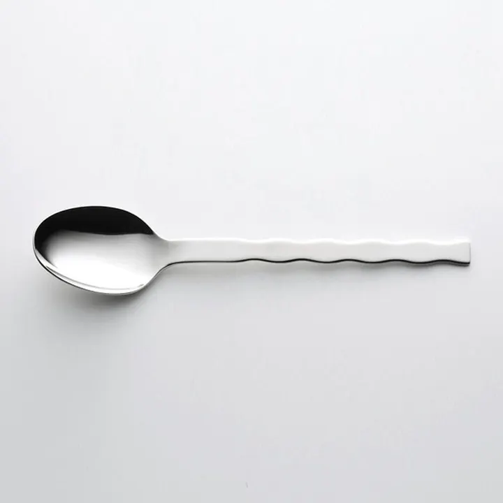Module Designテーブルウェアのデザインモチーフ〈ウェーブライン〉が特徴のカトラリーです。思わず触れたくなるラインは指にフィットするカタチです。背面にはModule Designの刻印があり、新潟燕市の洗練されたみがき技術がクォリティーの高さをより際立たせています。