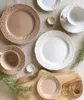 花びらのにぎわいを器の側面やふちに彫刻風に施し 立体的な花びらの凹凸を、釉薬の流れる濃淡で表現、土の風合いも出しています。 料理を盛る面は、凹凸模様が無いので使いやすく、テーブルにも映え、シンプルな色でありながら、やさしく花を咲かせます。こちらのライスボウルは茶碗としてはもちろん、小ぶりなスープ・サラダボウルとしてお使いいただいても様になります。