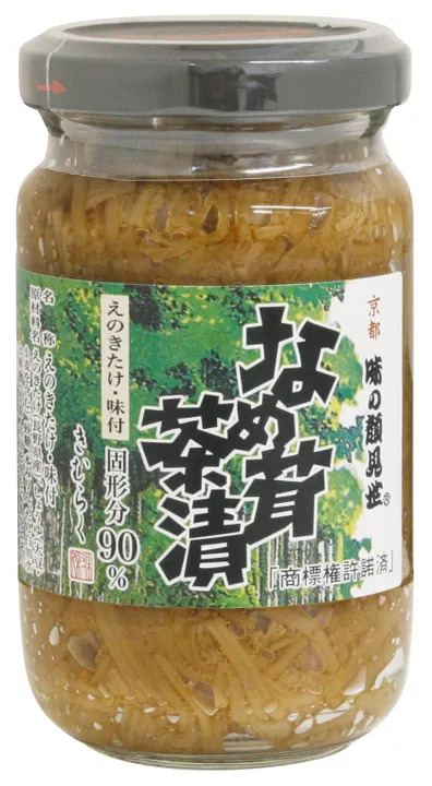長野県産えのき茸を固形分90%まで、甘辛い味付けでじっくりと煮込みました。 えのき茸は加熱すると粘りが出るという特徴がありますので、自然なとろみも広がり、ぎっしりと詰まったえのき茸のシャキシャキ感も味わえます。 白いご飯にもよく合います。 大根おろし、豆腐、お浸し等と合わせて、夕食の一品や酒の肴に、玉子焼きに入れてお弁当のおかずにと、幅広くお使い頂けます。 低カロリーで食物繊維やビタミンBが豊富で栄養価の高いえのき茸を使用していますので、いつもの食事にプラスする事で、健康維持にも役立ちます。なめ茸茶漬 120g瓶