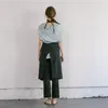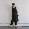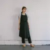 alinaユニフォーム アシンメトリーフルエプロン 胸元のカーブラインは 美しいデザインと胸浮きを防ぐ機能性を併せ持つpinopinaならではのエプロン 写真の首紐はそのまま結んでいます 首で結ぶタイプは肩が凝るとのお声から、ウエストに付けた短い紐に首紐を通してお使い頂くようにしていて ご自分のサイズに合わせた長さに調節できます アシンメトリーの裾が一番の特徴 左脇に大きめのタックを取り、タックに向かって斜めにカットした裾は、前身ごろは長めに取り、後ろは動きやすいように短めにしています 裾のラインは、どこから見ても美しいシルエット タック部分が長いので、足長効果あり! ウエスト紐で結ぶタイプ よりファッション性を持たせるために、タックの上で紐を結ぶように、左右の紐の長さを変えています