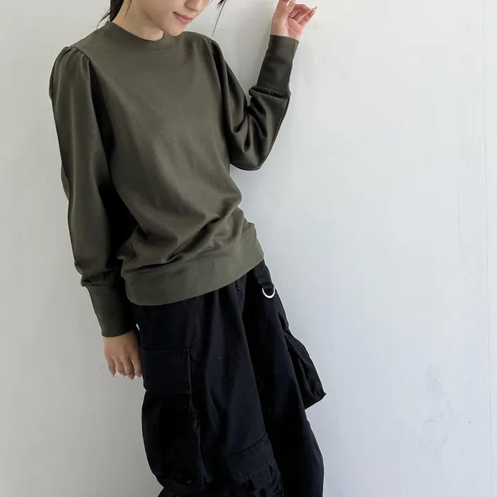 【日本製】ウォッシャブルウール_パワーショルダープルオーバー モスグリーン 1-2サイズ
