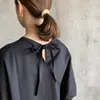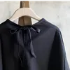 バックリボン_オーバーシルエット カットソーブラウス 背中のリボンを結ぶタイプのカットソーブラウス オーバーサイズのストンとしたシルエットです スパートやパンツにインしてもオーバースタイルでも きれいに決まる丈です リボンを結んだまま着脱できます カットソーですがブラウスのような素材で カットソーの着心地の良さとブラウスのきちんと感があり シンプルなボトムスと合わせてもこの1枚で ぐっと雰囲気がアップします スーピマコットンポンチロイヤルクール Cotton 100% 柔らかくしなやかな風合いをもつスーピマコットンコットン100%ですが上品な光沢のあるストレッチ性の高い素材です 最高級の品質を誇るピマ・コットンをハイゲージで編み極限まで毛羽をそぎ落しロイヤルクール加工を施しているので触感がひんやりとして、透けにくく柔らかく着心地がいいのが特徴です made in japan