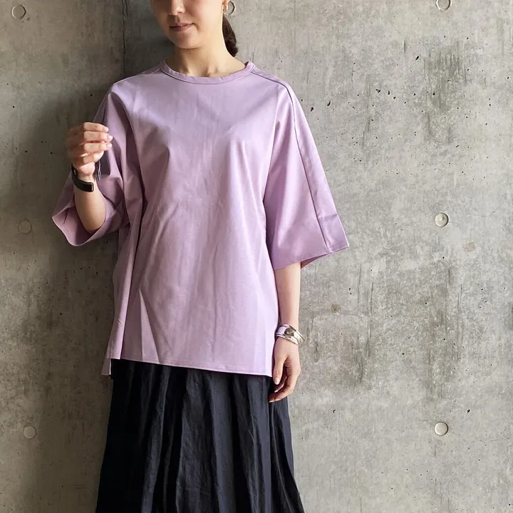 【日本製】バックリボン_オーバーシルエット カットソーブラウス ライラック