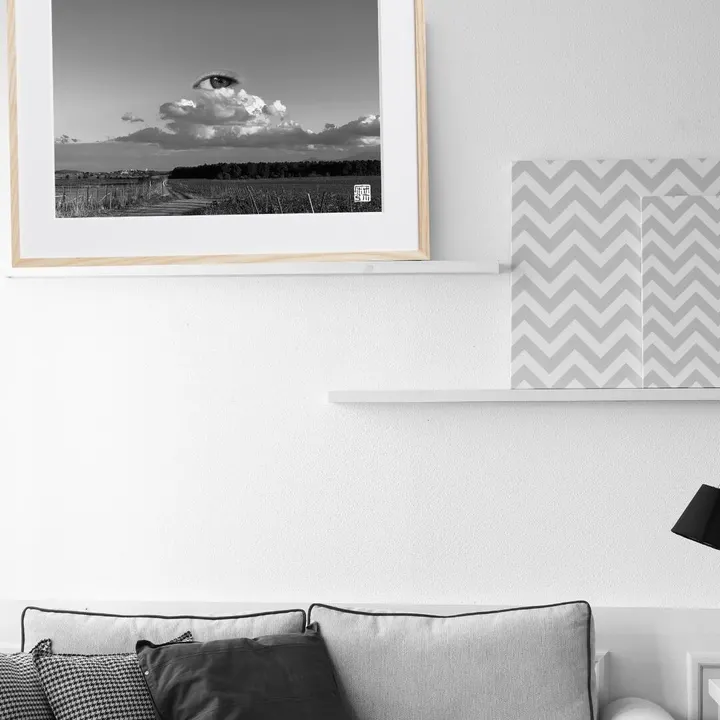【現代アートポスター】 モノトーン 白黒 風景景色 瞳 目 写真コラージュ A3(M) フレームセット:無垢 41.0×52.5cm