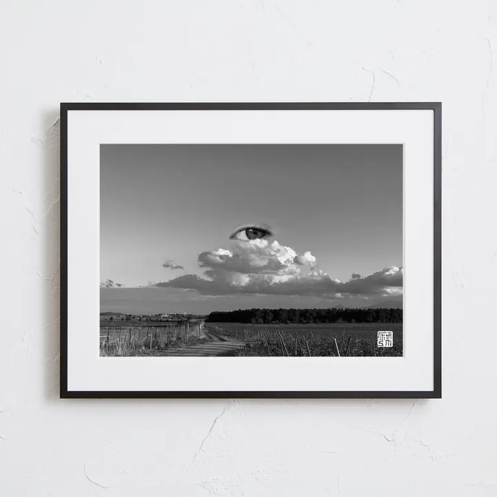 【現代アートポスター】 モノトーン 白黒 風景景色 瞳 目 写真コラージュ A4(S) フレームセット:黒 29.4×38.4cm