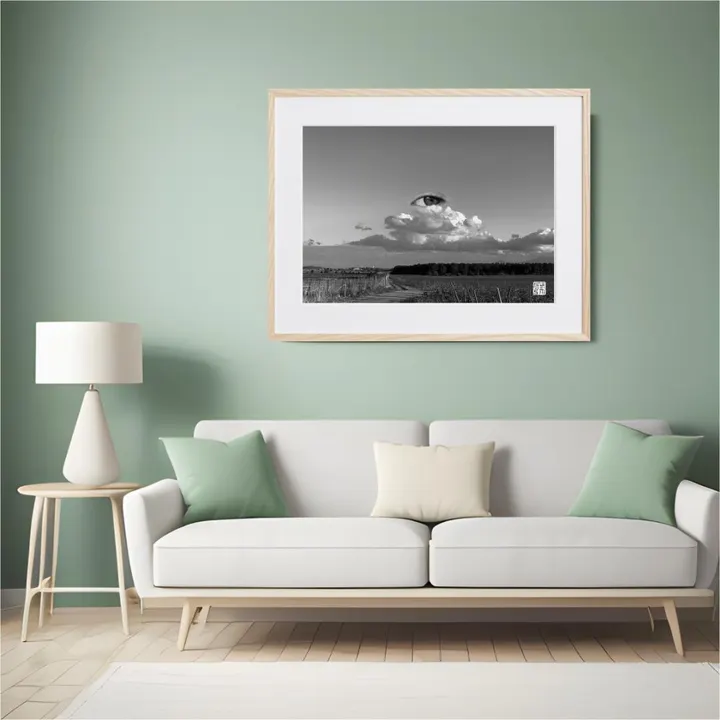 【現代アートポスター】 モノトーン 白黒 風景景色 瞳 目 写真コラージュ A2(L) フレームセット:無垢 56.1×74.3cm