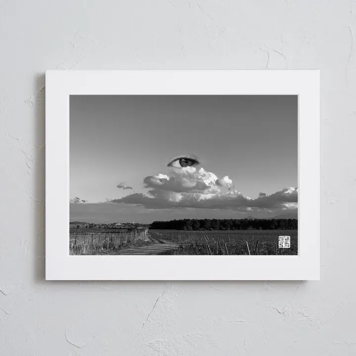 【現代アートポスター】 モノトーン 白黒 風景景色 瞳 目 写真コラージュ A2(L) 54.5×72.7cm(ポスターのみ)