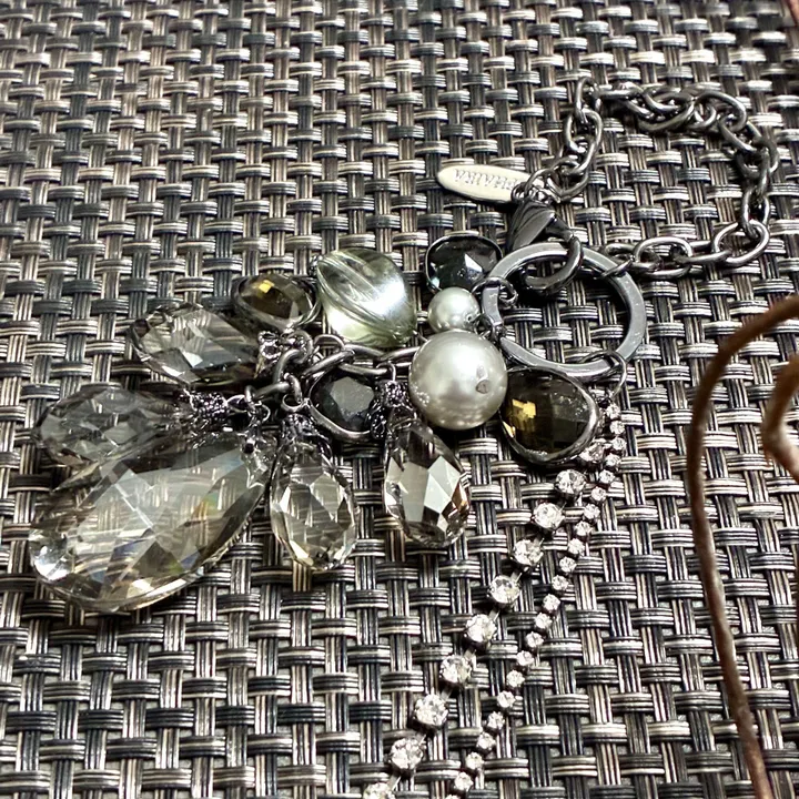 重厚なガラスとメタルを用い、静かな輝きと品格を纏うアクセサリー。日常にも特別な場にも寄り添う、大人のためのチャームブランド。