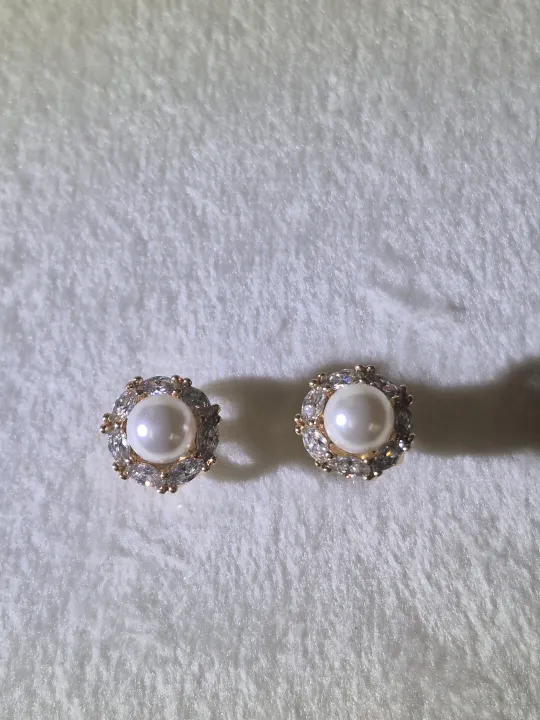 小ぶりのパールがワンポイントのジルコニア付きピアス。 普段使いやパーティ、お仕事にもおすすめです。