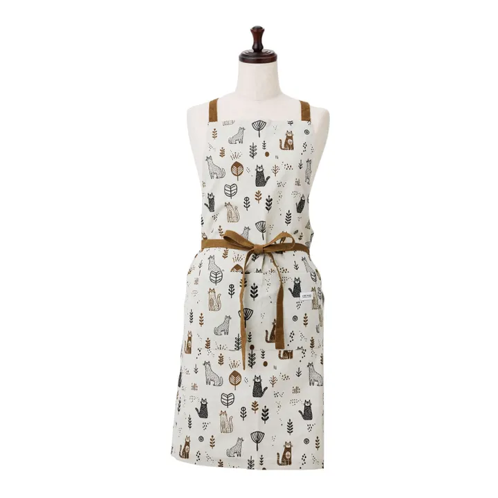 北欧テイストのネコモチーフを新たに追加。 肩ひもや腰ひものコントラストや、デザインの細部にこだわったエプロンです。 ●POINT 【着用しやすいクロスタイプのエプロン】 さっと着用しやすいクロスタイプのエプロンです。 前結びでも後ろ結びでも着用できます。 少し大きめなサイズを採用しており、ゆったりと着用できます。 【大きめなフロントポケット】 大きめなフロントポケット付き。 センターで分かれているので、メモやレシピなどを仕分けて入れることができます。 【クロスかけ紐】 キッチンで作業する際に便利なクロスかけ紐。 キッチンクロスやタオルなどをかけておくと便利です。 【サイズ調整可能】 肩ひものサイズが調整できるボタン付き。 サイズは2サイズ調整できます。