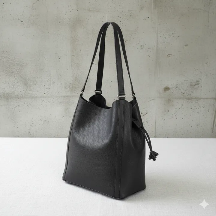 バケット型のトートバッグです! 独特のシボ感のあるシュリンクレザーを使用。 裏地がないので革の柔らかい素材感が引き立ちます。 トレンドの巾着のようなバケツ型&シンプルな造りで、お使いいただきやすいサイズ感のトートバッグです。 *********** 【素材】 ・本体:牛革(天然シュリンクレザー) ・内装:ナイロン(ポケット・底のみ) 【サイズ】 ・約:幅:28 x 高さ:33x 奥行:15㎝/重量 670g 【ポケット】 ・外装:前側ナシ ・ 後側ナシ ・内装:前側なし/後側仕切りポケットx1/ファスナーポケットx1 【ストラップ】 ・なし 【生産国】 ・バングラデシュ 【革についての注意点】 天然の革を使用しているため、表情、色に個体差があります。 商品の個性として、あらかじめご了承願います。 【MahL+81 ものづくりへの想い】 MahL+81 はバッグ製造メーカー・丸富商会のオリジナルブランドです。