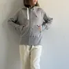 日本製 1-2(S):着丈57cm 身巾49cm 裄丈80cm 2-3(M):着丈59cm 身巾52cm 裄丈82cm cotton 100% 上質な裏毛で作ったこだわりのパーカーです 高級感があってシンプルだけど可愛いワンランク上のパーカーを楽しめます。 現存する数少ないビンテージの吊り編み機によって編みたてられた吊り裏毛を使用し、裏を羊の毛のように起毛させています。 吊り編み機は古い時代の生地には良く使われていますが、現代では希少なもです。 吊りニットは固定されたシンカーホイルでゆっくりと編みたてるため、糸に余計な負担がかからず、また、生地も機械で強制的に巻き取ることなく、自然に溜まっていきます。 そのため、洗い込むほどに実感できる手編み感覚豊かな風合い、フィット感を持ち、その特性を長期間保ちます。