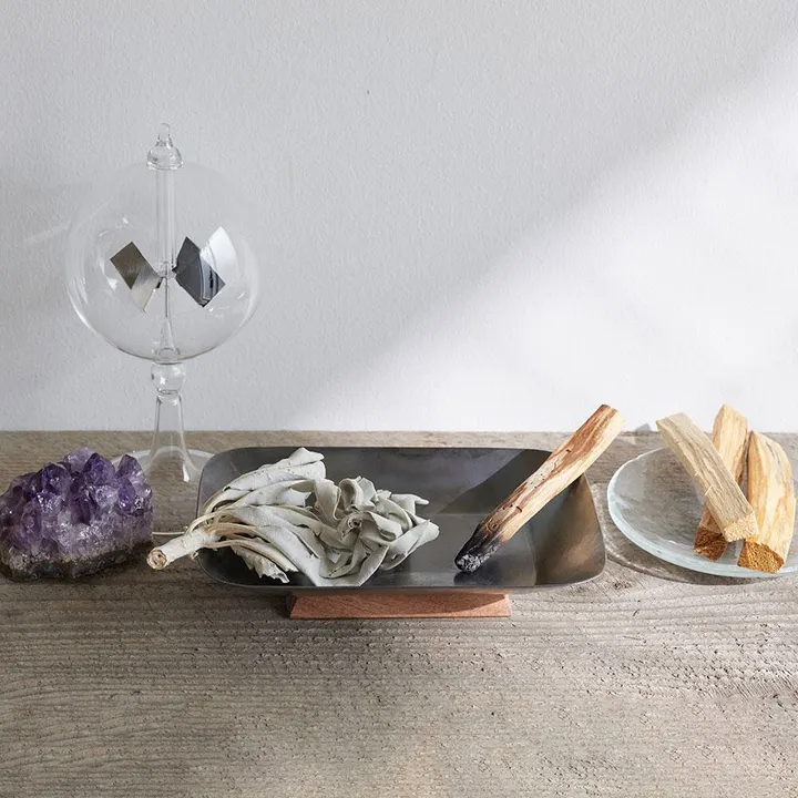ペルー産パロサント(4本)とセージ(10g)とアイアンと木の台セット/浄化