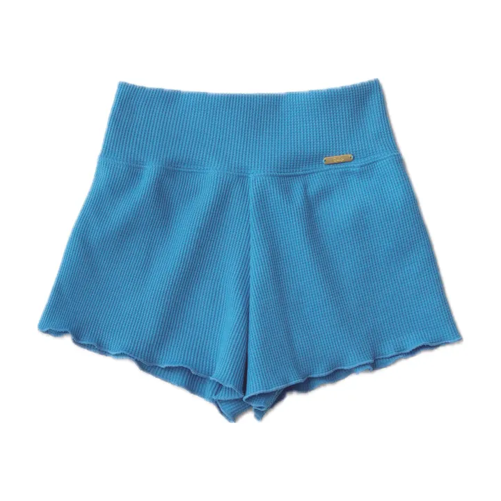 ボトムスの中にショーツをセットしたルームウェア。 むれやすいマチ部分は、おりものなどの少量の水分をすぐに吸収拡散するこだわりの素材を採用しているので、いつでも履いた直後のようなサラっとした着用感が続きます。 身生地はワッフルのようにマス目状の凸凹のある生地で、やわらかく、身体を包み込んでくれるような優しい肌触りです。