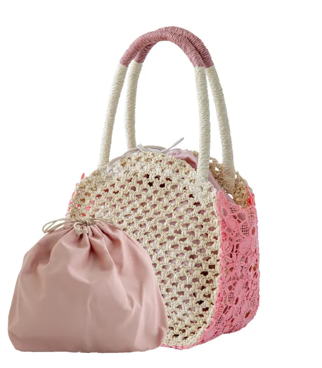 2026春夏バッグシリーズ、涼し気な雑材トートを中心に今年も“大人カワイイ”をたっぷりお届けします。 母の日のプレゼントにもぴったりのアイテムです。 ふんわり丸みのあるフォルムが可愛らしい、小ぶりサイズのお出かけバッグです。 サイドにあしらわれたフラワーレースは繊細なディテールを生かしてコーティング加工し、バッグに仕立てました。 ペーパー部分との透け感のバランスがポイントです。 レースの色とリンクさせた巾着インナーポーチがセットになっており、外からほんのり透けて見えることでより立体感が生まれます。 ハンドル部分は持ちやすいロープ調仕上げに。 レースの柄になったモチーフそれぞれの花言葉にもご注目ください。 ひまわり…憧れ さくら…純潔 クローバー…幸運 クレマチス…精神の美