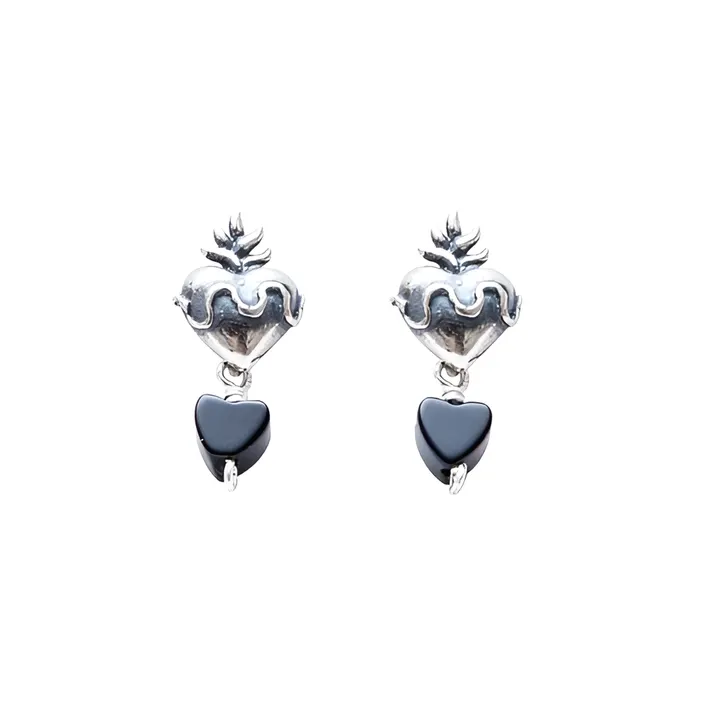 Aretes Sagrado Corazón|ハートのミニピアス(シルバー・パール・オニキス・天然石) オニキス