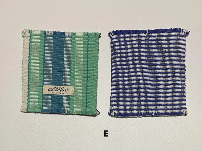 ハンセン病の療養施設で手織りしている細長い織物”ベサニーテープ”を2枚重ねて、フリンジを作った、リバーシブルのコースター!