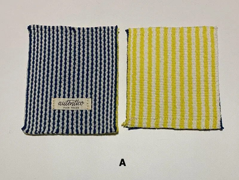 ハンセン病の療養施設で手織りしている細長い織物”ベサニーテープ”を2枚重ねて、フリンジを作った、リバーシブルのコースター!