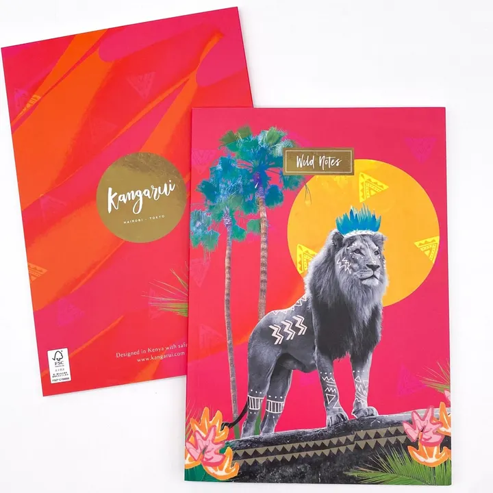 アフリカの大自然をモチーフにしたオリジナルアートカバー付きノートです。 あなたの夢や目標を書き留めたり、苦手な勉強の学習ノートにしてみるなど使い方は自由に!このノートでハッピーな時間をお過ごし下さい。 ラミネートマット紙カバー付きFSC認証ミックス用紙96ページ。 各デザイン内側にはトロピカルモチーフの透かしが入っています。 A5サイズ | A罫(7mm) | 日本製  "FEED THE BONGOS" ケニア特有の種であるマウンテンボンゴは、野生生息数が70数頭しかいない絶滅危惧種です。 ウシ科の中で最も大きい体を持つ彼らは密猟によってその数が年々著しく減少していて、Mt. Kenya野生動物保護局は数を増やすために繁殖活動をしています。カンガルイは、その「Save the Bongo Project」のサポートをしており、カンガルイのどの商品をご購入いただいてもその一部がマウンテンボンゴの餌代にあてられます。