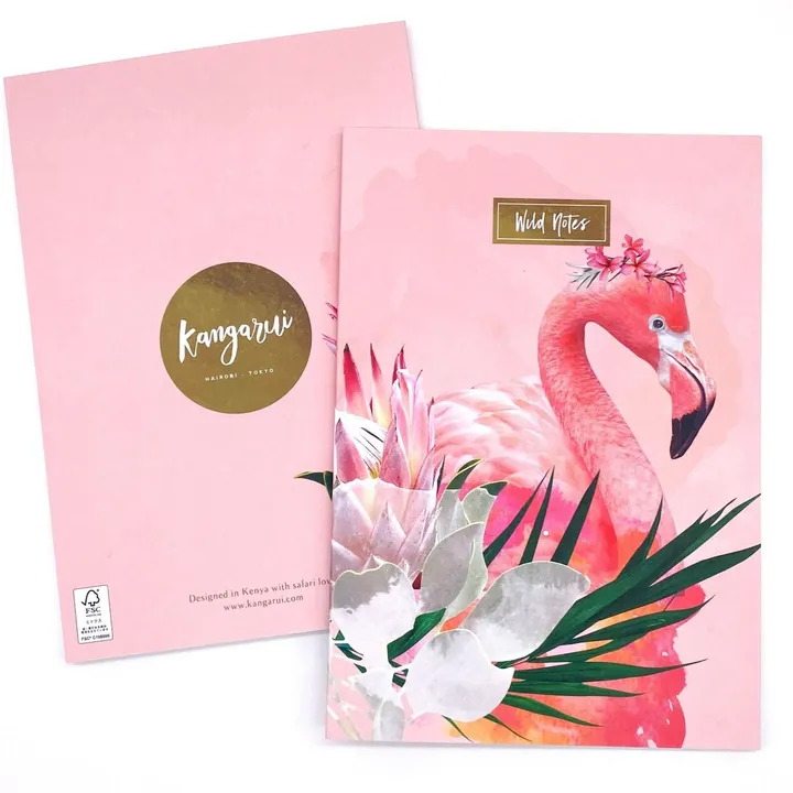 アフリカの大自然をモチーフにしたオリジナルアートカバー付きノートです。 あなたの夢や目標を書き留めたり、苦手な勉強の学習ノートにしてみるなど使い方は自由に!このノートでハッピーな時間をお過ごし下さい。 ラミネートマット紙カバー付きFSC認証ミックス用紙96ページ。 各デザイン内側にはトロピカルモチーフの透かしが入っています。 A5サイズ | A罫(7mm) | 日本製  "FEED THE BONGOS" ケニア特有の種であるマウンテンボンゴは、野生生息数が70数頭しかいない絶滅危惧種です。 ウシ科の中で最も大きい体を持つ彼らは密猟によってその数が年々著しく減少していて、Mt. Kenya野生動物保護局は数を増やすために繁殖活動をしています。カンガルイは、その「Save the Bongo Project」のサポートをしており、カンガルイのどの商品をご購入いただいてもその一部がマウンテンボンゴの餌代にあてられます。