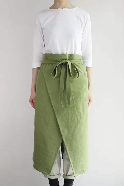 ウォッシュドコットン ギャルソンエプロン グリーン