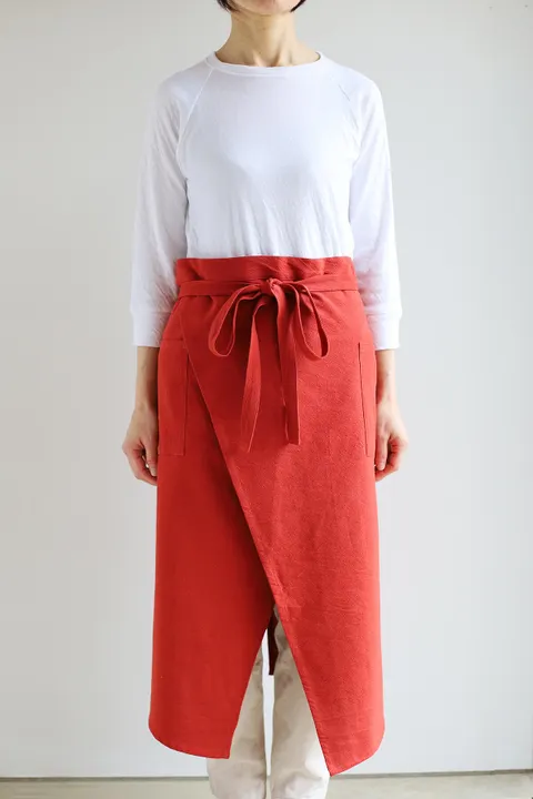 ウォッシュドコットン ギャルソンエプロン ブリックレッド