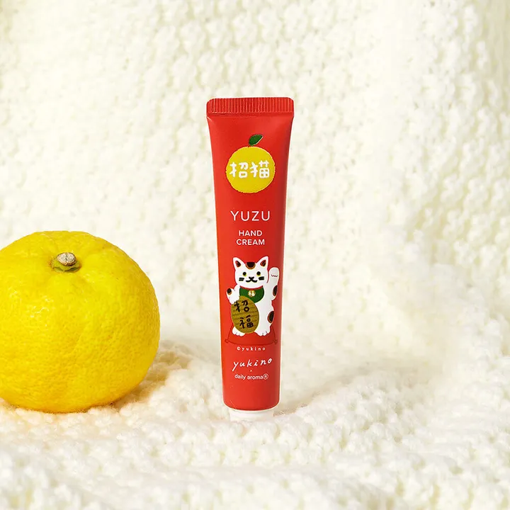 台東デザイナービレッジ出身のデザイナー・yukinoが手がける、〈招き猫×ユズの香り〉シリーズ。 幸運を呼び込む「招き猫」と、縁起の良いユズの香りが心と身体を優しく包み込みます。天然ユズ精油のみずみずしく爽やかな香りが広がるハンドクリームです。保湿成分にはユズセラミド(ユズ果実エキス)とユズ種子油を配合。自然由来の成分で、べたつきなく、しっとりとした潤いが持続します。 ※テスターや什器をご希望の場合※ 本商品ご注文時に現品テスター(00636)、什器(00136+00138)をご入用の旨をお申し付けください。 本商品の発送完了後、追加でテスター、什器のみのご注文を頂いてもお受けできませんのでご注意ください。