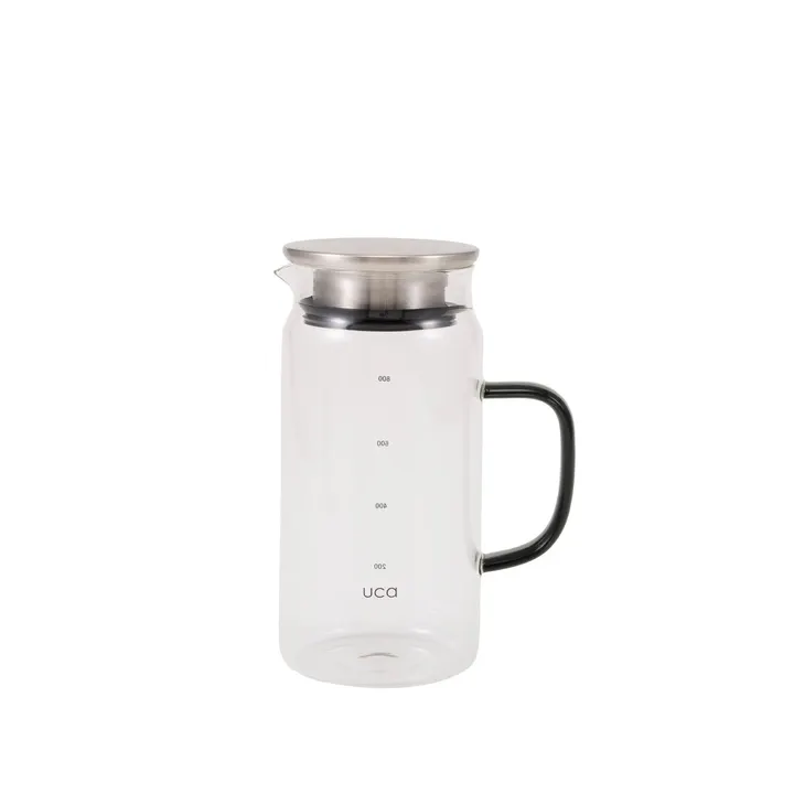 【LOG 耐熱ガラスウォータージャグ 1.0 / 1.4】 『LOG 耐熱ガラスウォータージャグ 1.0 / 1.4』は、シンプルで洗練されたデザインと機能性を兼ね備えた、暮らしに馴染むガラス製ジャグです。耐熱ガラス製なので、アイスティーやフレーバーウォーターはもちろん、温かいお茶やハーブティーにも対応。オールシーズン活躍する便利な一品です。 【熱湯も冷水も、これひとつで】 耐熱ガラス製だから、高温の飲み物も安心して注げます。温かいハーブティーや白湯など、季節に合わせたドリンクをこれひとつで楽しめます。 【茶こし付きで多彩なドリンクを楽しめる】 フタには茶こし穴が付いており、茶葉をそのまま入れてティージャグとして使用可能。フルーツやハーブを加えれば、おしゃれなフレーバーウォーターも簡単に作れます。 【便利なハンドル付き】 本体と一体成形のハンドル付きで、冷蔵庫や棚からの出し入れもスムーズ。飲み物を注ぐときも安定感があり安心して使えます。 【冷蔵庫ポケットに収まりやすいサイズ】 奥行き約9.5cmとスリムな設計で、冷蔵庫のドアポケットにもすっきり収納可能。見た目もすっきり、機能的なデザインです。 【お手入れ簡単&食洗機対応】 広口設計なので、奥まで手を入れてしっかり洗えます。さらに本体は食洗機対応で、日常のお手入れもラクラクです。 【製品情報】 商品名: LOG 耐熱ガラスウォータージャグ 1.0 サイズ: W140×D95×H200mm 重量: 360g 満水容量: 1.0L [本体]耐熱ガラス、[フタ]ステンレス、シリコーンゴム 耐熱温度差: 120℃ 原産国: 中国 【製品情報】 商品名: LOG 耐熱ガラスウォータージャグ 1.4 サイズ: W140×D95×H275mm 重量: 450g 満水容量: 1.4L [本体]耐熱ガラス、[フタ]ステンレス、シリコーンゴム 耐熱温度差: 120℃ 原産国: 中国