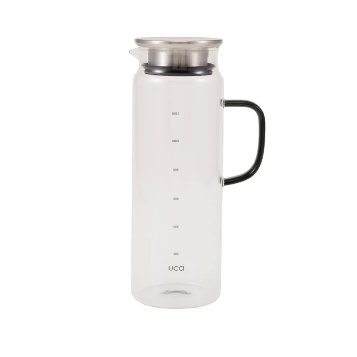 【LOG 耐熱ガラスウォータージャグ 1.0 / 1.4】 『LOG 耐熱ガラスウォータージャグ 1.0 / 1.4』は、シンプルで洗練されたデザインと機能性を兼ね備えた、暮らしに馴染むガラス製ジャグです。耐熱ガラス製なので、アイスティーやフレーバーウォーターはもちろん、温かいお茶やハーブティーにも対応。オールシーズン活躍する便利な一品です。 【熱湯も冷水も、これひとつで】 耐熱ガラス製だから、高温の飲み物も安心して注げます。温かいハーブティーや白湯など、季節に合わせたドリンクをこれひとつで楽しめます。 【茶こし付きで多彩なドリンクを楽しめる】 フタには茶こし穴が付いており、茶葉をそのまま入れてティージャグとして使用可能。フルーツやハーブを加えれば、おしゃれなフレーバーウォーターも簡単に作れます。 【便利なハンドル付き】 本体と一体成形のハンドル付きで、冷蔵庫や棚からの出し入れもスムーズ。飲み物を注ぐときも安定感があり安心して使えます。 【冷蔵庫ポケットに収まりやすいサイズ】 奥行き約9.5cmとスリムな設計で、冷蔵庫のドアポケットにもすっきり収納可能。見た目もすっきり、機能的なデザインです。 【お手入れ簡単&食洗機対応】 広口設計なので、奥まで手を入れてしっかり洗えます。さらに本体は食洗機対応で、日常のお手入れもラクラクです。 【製品情報】 商品名: LOG 耐熱ガラスウォータージャグ 1.0 サイズ: W140×D95×H200mm 重量: 360g 満水容量: 1.0L [本体]耐熱ガラス、[フタ]ステンレス、シリコーンゴム 耐熱温度差: 120℃ 原産国: 中国 【製品情報】 商品名: LOG 耐熱ガラスウォータージャグ 1.4 サイズ: W140×D95×H275mm 重量: 450g 満水容量: 1.4L [本体]耐熱ガラス、[フタ]ステンレス、シリコーンゴム 耐熱温度差: 120℃ 原産国: 中国
