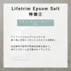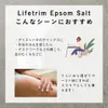 パッケージリニューアルで再登場! お風呂で効率よくミネラル補給 欧米では古くから入浴剤として親しまれるエプソムソルト。 「ミネラルの王様」マグネシウムを豊富に含んだ結晶で、体の芯からぽかぽかと温まる*ような心地よさ・湯上がりのつるんとしたお肌※が特徴的。 ※入浴による たっぷり使える大容量タイプ。 全身浴はもちろん、ボディスクラブとしても使える万能入浴剤。 香りは合成香料は一切使用せず、天然エッセンシャルオイルア(精油)だけ。 フルーティーで甘い「マンダリン」とローズを思わせる「ゼラニウム」に、 リラックスアロマの代表格「ラベンダー」とスパイシーでドライな甘さの中にぬくもりを感じる「シダ―ウッド」を加えたスペシャルブレンド。 あなただけのとっておきのバスタイムをお楽しみください。 【使用方法】 ①お風呂に入れて全身浴に エプソムソルトの温浴効果を一番ご実感いただけるのが全身浴です。 お湯を入れた家庭用浴槽にライフトリム エプソムソルトを容器横シールひと目盛り分入れ、よくかき混ぜます。お好みに応じて量を調整してください。 ●お湯の温度は 38~42℃、時間は15~20分を目安にし、長時間の入浴は避けます。 天然エッセンシャルオイルの香りとエプソムソルトの温浴効果で身も心もぽかぽか。 入浴後はそのままゆっくり過ごすのがおすすめです。 ●エプソムソルトは、高い温浴効果により、優れた発汗作用があることで知られています。ご入浴の前後や途中に水分補給をしっかりとおこなうことをおすすめします。 ※発汗の実感には個人差があります。 ②フットバスに 小さじ2~3杯のライフトリム エプソムソルトを足が入る大きさの容器にお湯とともに入れて溶かし、15~20分を目安に足浴をします。 ●脚の重たさが気になるとき、脚をリラックスしたいとき、足元がひえてしまったときなどお気軽にお試しください。 ●ユニットバスでなかなかお風呂に浸かれないなど、全身浴がむずかしい方にもおすすめの使用方法です。 ③ネイル前のケアに エプソムソルトを溶かしたお湯は角質層に浸透し、やわらかくする効果があるといわれています。洗面器などの容器にお湯を入れ、15~20分を目安に手足を入れます。 水分をよく拭き取って、その後いつものお手入れをしてみてください。今まで硬くなってしまって取りきれなかった爪まわりの角質層や甘皮のやわらかさにお気付きになるでしょう。 ●ハンドバスで小さじ1~2杯、フットバスで小さじ2~3杯がご使用の目安です。お好みで量を調整してお使いください。 ●ネイルケア前だけでなく、かかとのごわつきが気になるときにもぜひお試しください。 まるで赤ちゃんのようなつるつるのかかとを作るお手伝いをします。 ④スクラブとして お手持ちのクレンジング剤やホホバオイル・オリーブオイルなどの植物性化粧用オイルにティースプーン半分ほどのライフトリム エプソムソルトを混ぜ、やさしく円を描くようにマッサージします。その後、じゅうぶんに洗い流し、化粧水や乳液などでしっかりと保湿します。 余分な角質をおだやかに落とし、なめらか肌をつくるお手伝いをします。