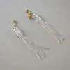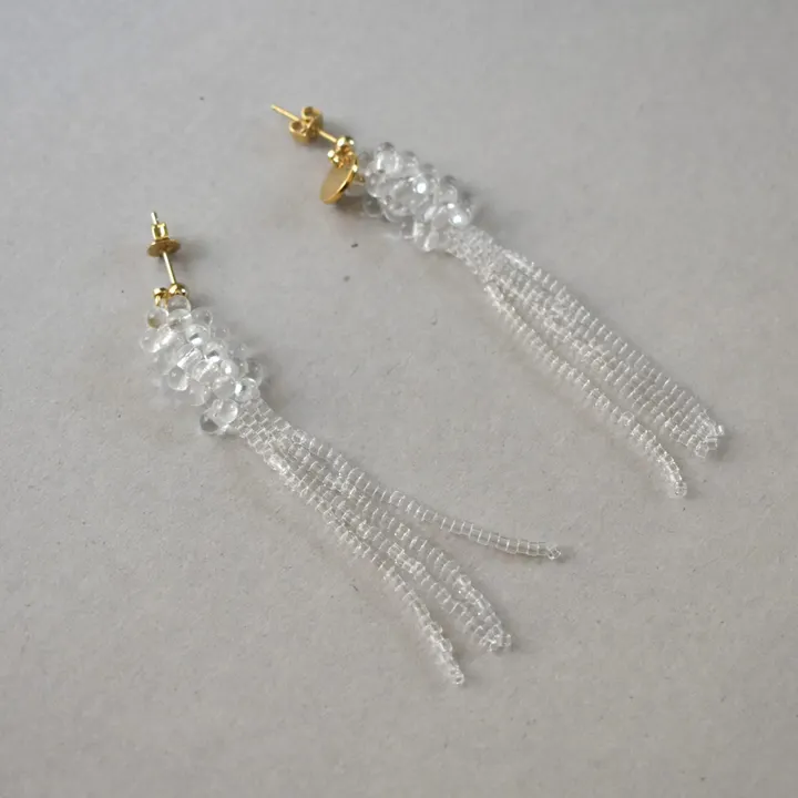 これ以上分けることのできない最も基本的な粒子 すべての物質や力は この素粒子とその相互作用によって成り立っています おなじ素粒子の組み合わせでも 配置やつながり方によって “人間” や “木” や “水” になったりします 人間という “複雑な生命” も 突き詰めると 単純な最小の粒(素粒子)の集合体でできていると言えます 世界を感じる主体である私たちは 複雑な物理現象の結果でしかありません “配置=意識” と “構造=感情” 科学と哲学の境目で 我々は何を思考し何を綴って生きていくのか --- 透明なガラスビーズのみを使用し 清らかにお仕立てしました 金属ビーズを使用していないため 肌あたりも柔らかです material K14GF ゴールドフィルド(ピアス金具)、SILVER925 金メッキ(イヤリング金具)、ガラスビーズ、真鍮、テグス size 約75x10mm weight 約2.0g-3.4g *取付金具によって重さが異なります *CACICOの商品は全て1点1点制作しているため、個体差があり、商品写真と差がある場合がございます。ご了承の上、ご購入ください。 *金属アレルギーの方はご使用をお控えください