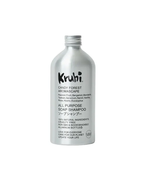 「環境に配慮している」だけで、使い心地を我慢する時代は終わりです。 Kruhiのボタニカル石けんシャンプーは、合成成分に頼らず、頭皮と髪の本質に向き合うことで、 “やさしさ”と“実感”の両立を叶えました。 毎日使い続けられる心地よさと、洗うたびに整っていく頭皮環境。 その先に、髪本来の健やかさと、環境へと正しく循環する選択があります。 1️⃣ キシミを抑え、続けられる石けんシャンプー 2️⃣ 頭皮環境を整え、髪に水分を取り戻す本質的なスカルプ&ヘアケア 3️⃣ 欧州で最も厳しいとされる環境認証「Grøn Salon」を、アジア・日本で初めて取得 4️⃣ 深呼吸したくなるオリジナルアロマが、日々のバスタイムを“整う時間”へ ■ きしみを抑えた、続けられる石けんシャンプー 「環境に良いものは、使い心地や香り、効果を我慢するもの」 そんなこれまでの常識を、やさしく更新するのが Kruhiのボタニカル石けんシャンプーです。 石けんシャンプー特有のきしみをできる限り抑え、 髪と頭皮に必要なうるおいを守りながら、汚れをやさしく落とします。 石けんシャンプーは、使い方に少しだけコツが必要です。 そのポイントをつかむことで、頭皮環境を過度に刺激することなく、 髪が本来持っている健やかな状態へと、少しずつ整っていきます。 石油由来成分などの合成成分に頼らず、 ここまでの使用感と香りを実現できるのは、 妥協のない処方設計と、製造工場によるたゆみない手間と工夫があるからこそ。 合成成分を添加しない“非効率的”な選択がもたらす、 確かな手応えを感じてください。 「やさしさ」と「実感」、そのどちらも諦めない処方。 日々のサロンワークはもちろん、 お客様のご家庭でのケアにも、安心して取り入れていただけます。 ■ カラー・パーマ施術後にも配慮した設計 従来の石けんシャンプーでは、 カラーリングやパーマ後の褪色を心配される声も少なくありませんでした。 Kruhiの石けんシャンプーは、 どんな髪質にも使えることをコンセプトに、 カラー剤・パーマ液の洗い流しにも使用できるよう、pHバランスを調整しています。 特に、ヘナ染め前のプレシャンプーとしてお使いいただくことで、 髪と頭皮をすこやかな状態に整え、 ヘナの色の入りをより高めるサポートとしてもご活用いただけます。 ■ 髪本来の力を取り戻す、シンプルな設計 髪や頭皮の乾燥、細毛、ハリ不足を年齢のせいにして、 より強い洗浄力や多くのケミカル成分に頼っていないでしょうか。 Kruhiは、そうしたトラブルの多くが、 日々使い続けているシャンプーによる「洗い過ぎ」から生まれている可能性に着目しました。 合成成分に頼らず、必要なものだけで洗うことで、 使い続けるほどに毛髪には水分が戻り、 頭皮からふんわりと立ち上がる、ハリ・コシ・ツヤのある状態へ。 乾燥やフケなどの頭皮トラブルを抱える方の頭皮環境も、 徐々に健やかな状態へと整えていきます。 それこそが、合成成分を使用しない石けんシャンプーが持つ、本質的な良さです。 年齢・性別・髪質を問わず、 「洗う」「うるおす」 このシンプルな2つを、きちんと叶える設計です。 ■ 自然由来指数100%・ケミカルフリー処方 (※水を含まない自然由来指数 80.5%/ISO16128準拠) 全成分は100%植物由来。 石油由来成分などの化学物質に頼らず、 小さなお子様からご高齢の方、愛犬まで、 毎日のケアに安心してお使いいただける処方です。 【11のフリー処方】 ▪ 石油由来成分 ▪ 合成界面活性剤 ▪ シリコン ▪ 合成着色料 ▪ 合成香料 ▪ 合成防腐剤 ▪ 動物実験 ▪ 遺伝子組み換え原料 ▪ 鉱物油 ▪ パラベン ▪ アルコール ■ 排水から考える、環境への配慮 Kruhiの石けんシャンプーは、5日間で98.9%の生分解性が確認されています(試験済)。 毎日の生活の中で、最も多くの汚れた水を排出する「お風呂場」からの排水。 そこで使うプロダクトを変えるだけで、自分自身の髪や頭皮、素肌を守ることと同時に、 水質汚染や海洋環境への負荷軽減につながると考えています。 容器にはリサイクルアルミボトルを採用。 使う前から、使い終えたあとまで、環境循環を意識した設計です。 屋久島の自然保護区内という、古くから守られてきた豊かな自然環境に佇む宿泊施設にもご選定いただいている、 環境や生態系への配慮を大切にしたシャンプーです。 ■ 1% for the Planetを通じた環境保護への取り組み Kruhiを選び、日々のケアに取り入れること自体が、 環境負荷や生態系への影響を見直す一つのアクションになります。 さらにその想いを、具体的なかたちで未来へつなげるため、 Kruhiは「1% for the Planet」を通じ、 収益の1%以上を毎年、環境保護活動団体へ寄付しています。 つくる責任、使う責任、その先の循環までを見据えたものづくり。 Kruhiは、ケアを通じて生まれる小さな選択が、 地球環境を守る確かな力になると信じています。 ■ オリジナルアロマ「Candy Forest Aromascape」 9種の天然精油とパッションフルーツ