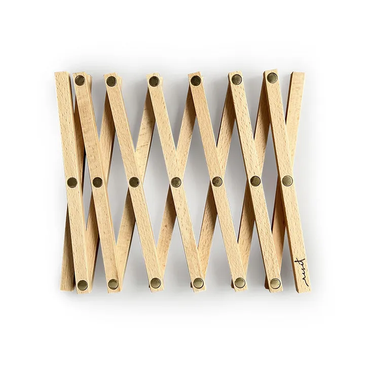 大きめのお鍋や、複数のお鍋を同時に置ける使い勝手抜群な伸縮タイプの鍋敷き。 Red Cabinオリジナルブランド「the reset」より、グラタンの大きいお皿や、ポットとお鍋など複数同時に置ける便利な鍋敷きが登場です。 横に伸縮するユニークな構造は、置く物に合わせてサイズ調節ができるのが魅力的。畳んでいる際は、コンパクトなのでスペースもとりません。 またクロスするウォールナットの素敵なデザインが、いつもの食卓をすっきりおしゃれにお料理を引き立てます。 サイズはSmallとLargeをご用意。自分の暮らしに合ったサイズをお選びいただけます。 カラーは濃い色味のウォールナット、淡い色味のブナ、ナチュラルなチェリーの3種類展開。 大人なカジュアルさが漂うウォールナット、テーブルを明るく彩ってくれるブナ、どんなインテリアともナチュラルに溶け込むチェリーと、種類でテーブルコーディネートの印象ががらりと変わります。 美しい木目と色味が素敵な鍋敷きは、どんなお鍋やポットとも相性抜群。木製ならではの、ナチュラルで温かみのある素材感もお楽しみいただけます。 板の端にはブランドロゴの焼き印がさり気なく施されており、お鍋を置いたときにチラッと見えるのもおしゃれです。 持ち運び・収納に活躍する嬉しい巾着袋付き。普段使わない時など、汚れが付かないよう保管ができる巾着袋が付属。アウトドアなど持ち運びにも便利です。 鍋敷きとしてだけでなく、あらゆる使い方にもおすすめ。キッチンカウンターなどに置いて食器置きにしたり、植木鉢をおいてインテリアとしてもおすすめです。 ※天然木のため、木目や色味は商品によって個体差があります。 ※製造工程上、折りたたんだ時に隙間ができたり、ネジの締めた高さに若干誤差がある場合がございます。 ※木の保護・強度を保つため植物性オイルを施しております。香りがする場合がございますが徐々に薄れていきます。ご使用上問題ございませんのでご安心ください。 上記のような場合は、品質基準をクリアした商品になります。こうした理由での交換・返品は対象外となりますので、予めご了承の上ご注文下さい。