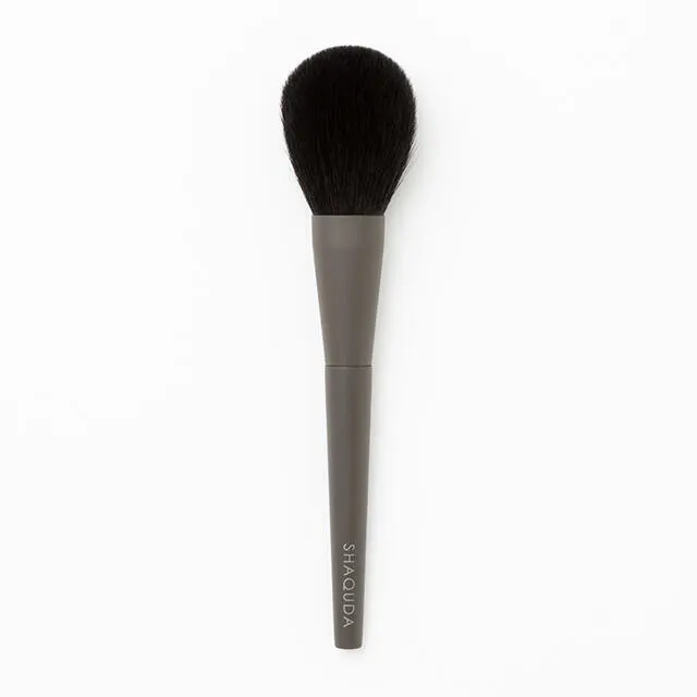 天然山羊毛を贅沢に使った毛丈の長いフェイスパウダーブラッシュ。ベーシックな形状の穂先は使いやすく、お粉をたっぷりと含ませてクルクルとなでるように肌にのせると、透明感あふれるクリアな艶肌に仕上がります。ハンドルの裏面には、置いた時に転びにくいシャープなカットを施しています。